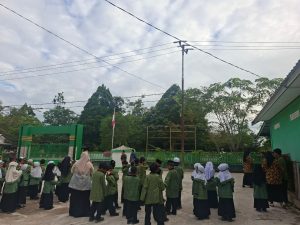 Kujan, Lamandau – Kepala Madrasah Ibtidaiyah (MI) Izharul Ulum, Riska Zuliani, S. Pd. menyampaikan bahwa pelaksanaan upacara bendera memperingati Hari Kesaktian Pancasila merupakan sarana edukasi penting dalam memperkuat karakter kebangsaan siswa madrasah, (01/10/2025)